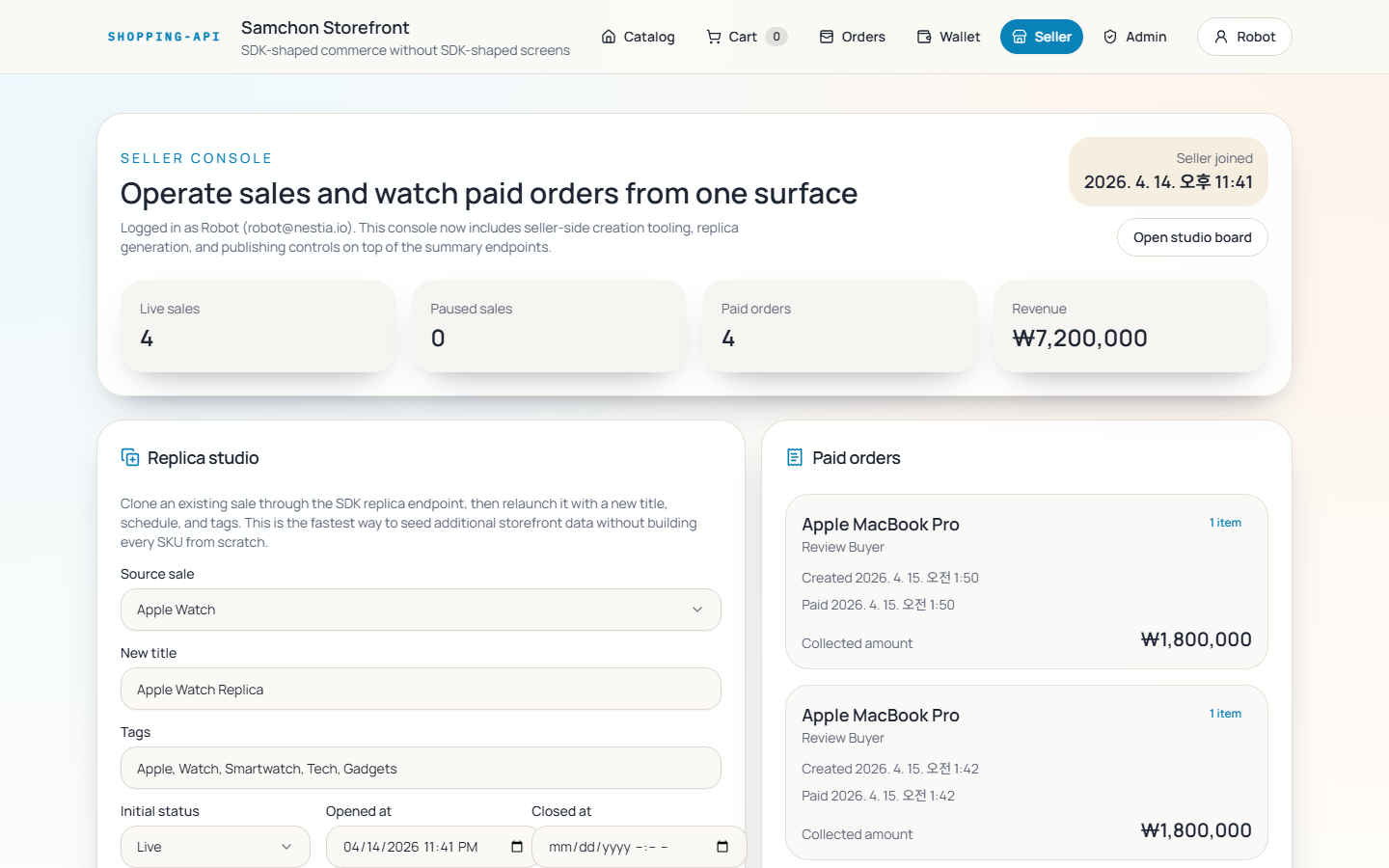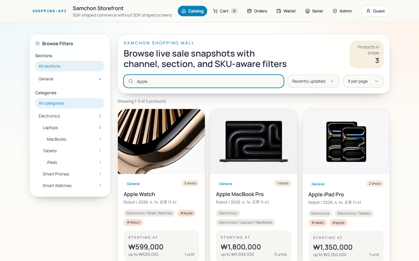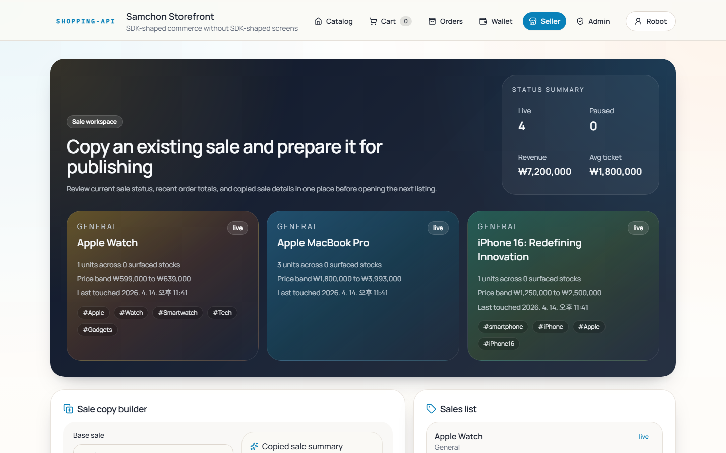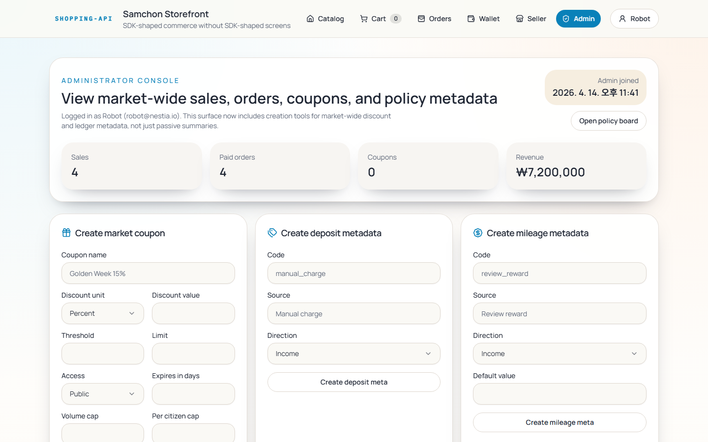 I converted a shopping mall backend’s Swagger into a typed SDK and handed it to Claude with a single CLAUDE.md prompt. It produced a working enterprise-scale frontend — customer flows, seller console, admin panel — in one shot.